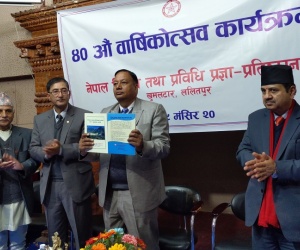 The Then Hon'ble Minister for Education, Science and Technology, Mr. Devendra Poudel launched a book on Climate Change Situation in Nepal: Impacts and Adaptation Initiations (In Nepali Language) published by NAST-NCCKMC